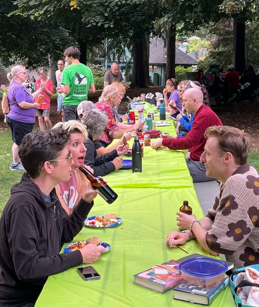 We’re currently focused on ending the sale of foie gras in Portland but have plenty of ideas for future campaigns. We also host regular social events across the Portland metro area which attract a group of animal advocates from all walks of life.